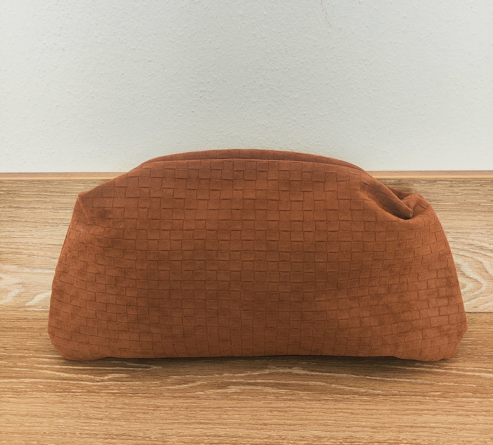 ΠΟΡΤΟΦΟΛΙ ΜΕ ΚΛΕΊΣΙΜΟ CLUTCH ΑΠΟ ΥΦΑΣΜΑ ΣΟΥΕΤ ΜΕ ΛΕΠΤΟΜΈΡΕΙΑ ΠΛΕΚΤΗ ΣΕ ΚΑΦΕ ΑΝΟΙΧΤΌ ΧΡΩΜΑ .ΦΟΔΡΑΡΙΣΜΕΝΟ ΜΕ ΕΣΩΤΕΡΙΚΉ ΤΣΈΠΗ . ΔΙΑΣΤΑΣΕΙΣ 40εκ ΦΑΡΔΟΣ ΚΑΙ 20εκ ΥΨΟΣ.