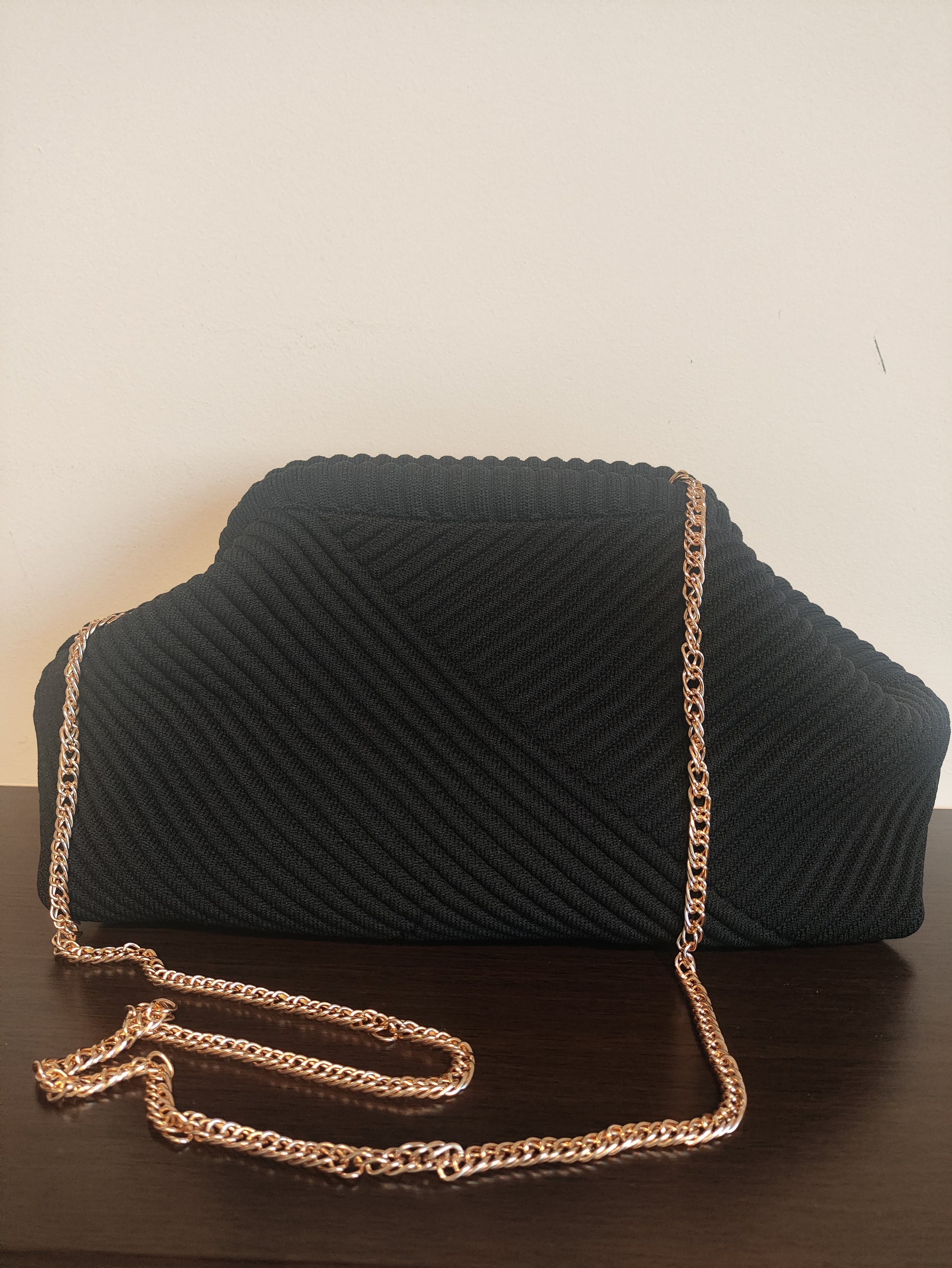 ΤΣΑΝΤΑΚΙ CLUTCH ΠΛΕΚΤΟ ΣΕ ΜΑΥΡΟ ΧΡΩΜΑ ΜΕ ΧΡΥΣΗ ΑΛΥΣΙΔΑ.ΔΙΑΣΤΑΣΕΙΣ 30 εκ ΦΑΡΔΟΣ ΚΑΙ 22 εκ ΥΨΟΣ.