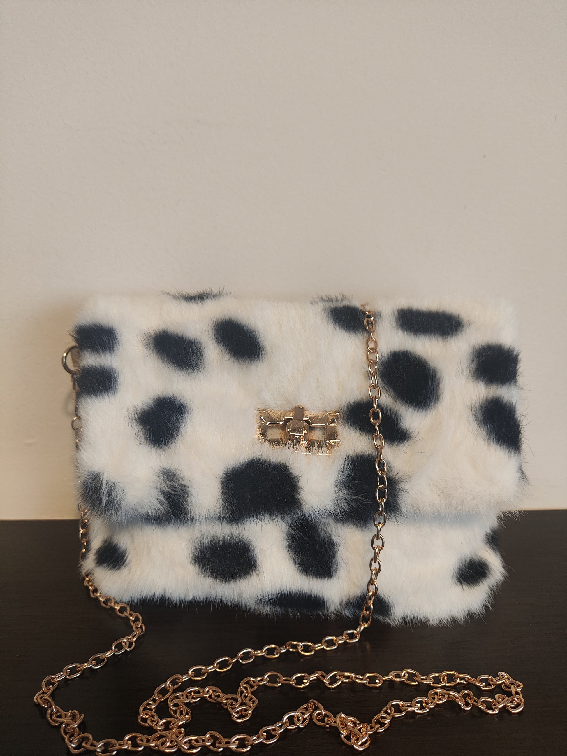 ΤΣΑΝΤΑΚΙ ΓΟΥΝΙΝΟ ΜΕ ΚΟΥΜΠΩΜΑ ΣΕ ΣΧΕΔΙΟ COW ΑΣΠΡΟΜΑΥΡΟ ΜΕ ΧΡΥΣΗ ΑΛΥΣΙΔΑ.ΔΙΑΣΤΑΣΕΙΣ 20 εκ ΦΑΡΔΟΣ ΚΑΙ 15 εκ ΥΨΟΣ.