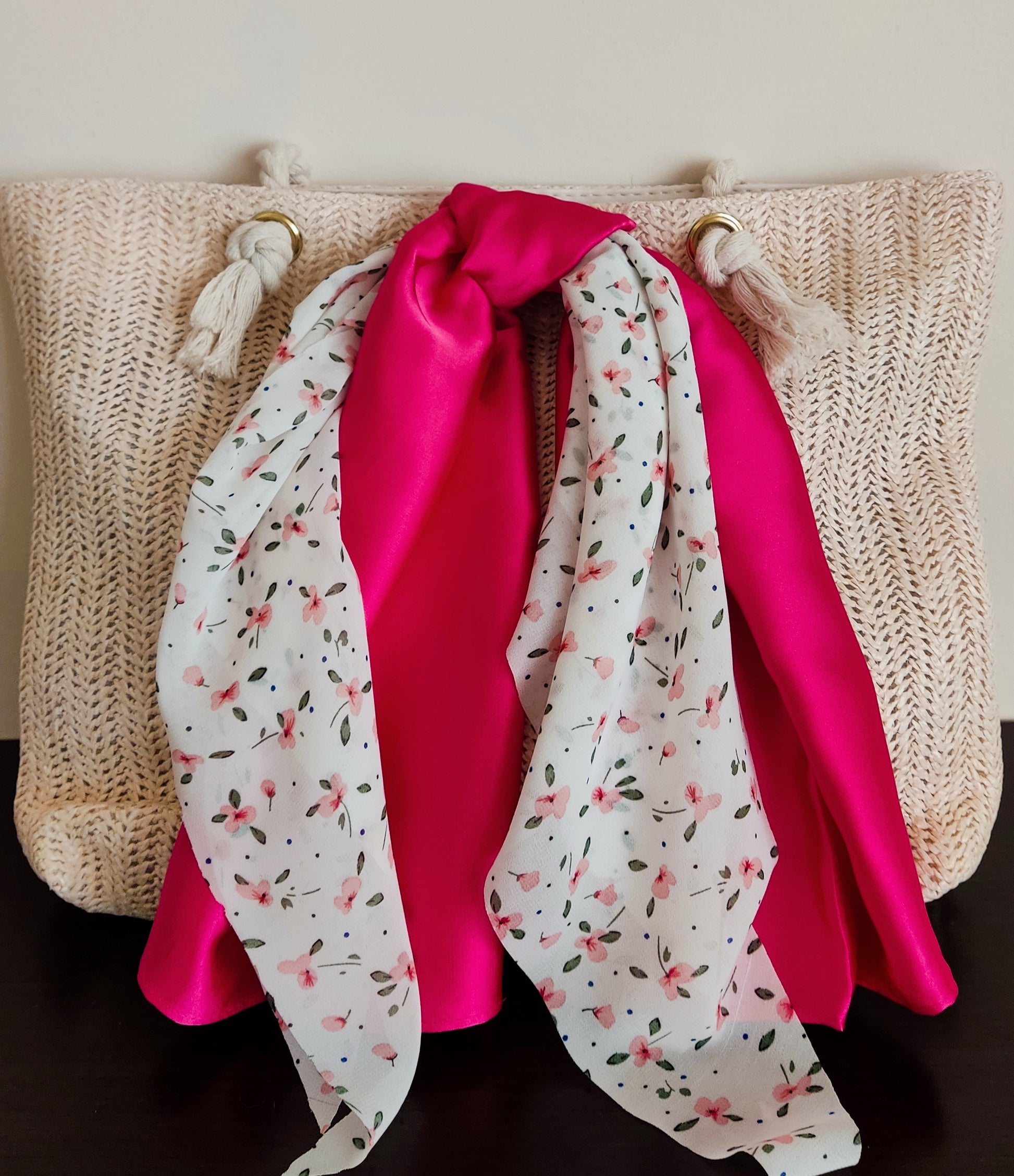 ΨΑΘΙΝΗ ΤΣΑΝΤΑ ΦΟΔΡΑΡΙΣΜΕΝΗ ΣΕ ΜΠΕΖ ΧΡΩΜΑ ΔΙΑΚΟΣΜΗΜΕΝΗ ΜΕ ΜΑΝΤΗΛΙΑ ΣΑΤΕΝ & ΟΡΓΑΤΖΑΣ ΣΕ ΧΡΩΜΑΤΙΣΜΟΥΣ ΤΟΥ ΦΟΥΞΙΑ ΓΙΑ ΕΝΑ ΑΝΕΜΕΛΟ LOOK.ΚΛΕΙΣΙΜΟ ΜΕ ΦΕΡΜΟΥΑΡ. ΟΙ ΔΙΑΣΤΑΣΕΙΣ ΕΙΝΑΙ 35εκ ΦΑΡΔΟΣ ΚΑΙ 30εκ.ΥΨΟΣ.