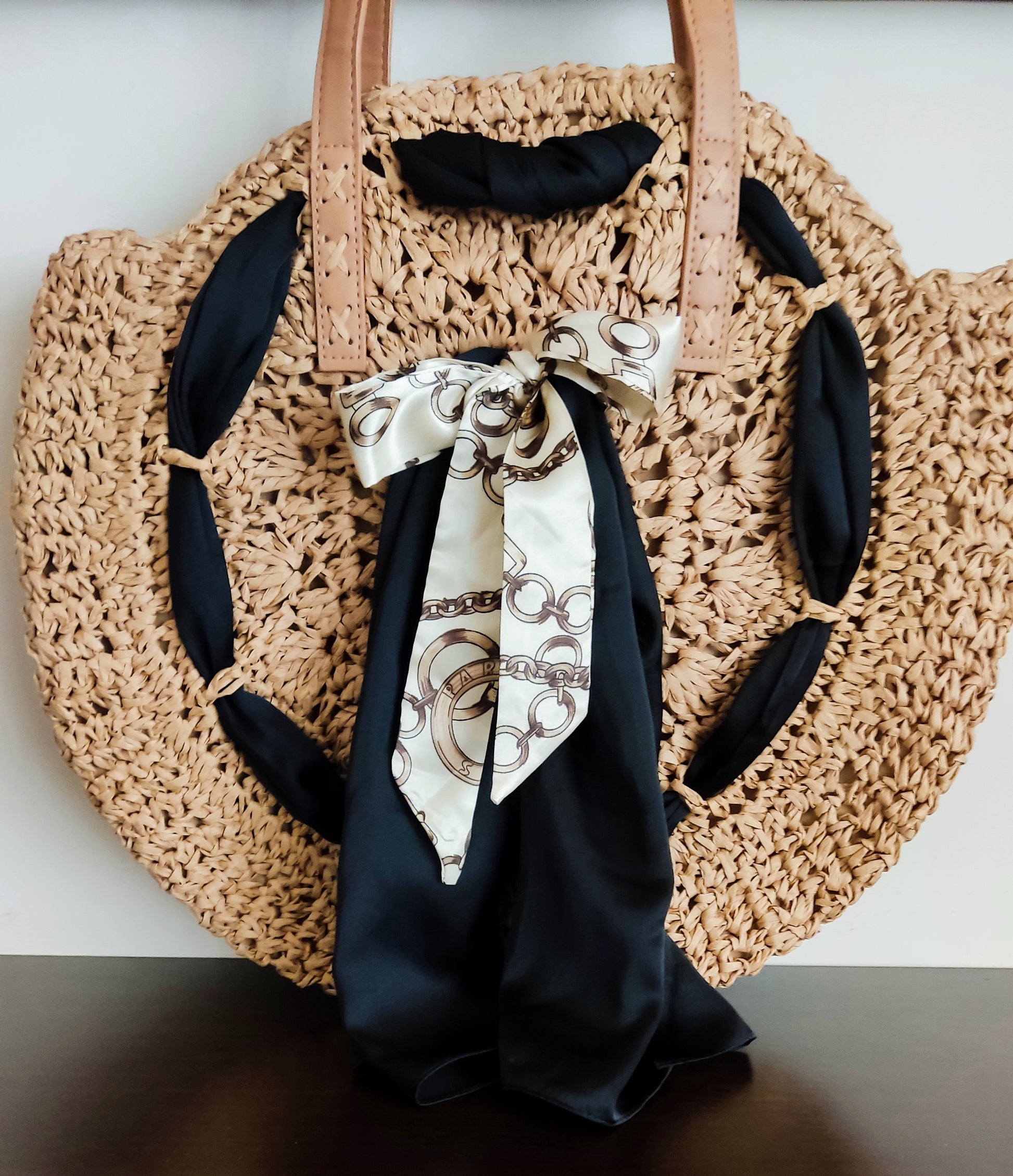 ΨΑΘΙΝΗ ΤΣΑΝΤΑ ΣΤΡΟΓΓΥΛΗ ΔΙΑΚΟΣΜΗΜΕΝΗ ΜΕ ΣΑΤΕΝ ΜΑΝΤΗΛΙΑ ΣΕ ΧΡΩΜΑΤΙΣΜΟΥΣ ΤΟΥ ΜΑΥΡΟΥ ΓΙΑ ΑΝΕΜΕΛΟ LOOK .ΦΟΔΡΑΡΙΣΜΕΝΗ ΜΕ ΕΣΩΤΕΡΙΚΗ ΤΣΕΠΗ ΚΑΙ ΚΛΕΙΣΙΜΟ ΜΕ ΦΕΡΜΟΥΑΡ.ΟΙ ΔΙΑΣΤΑΣΕΙΣ ΕΙΝΑΙ 45εκ ΦΑΡΔΟΣ ΚΑΙ ΥΨΟΣ.