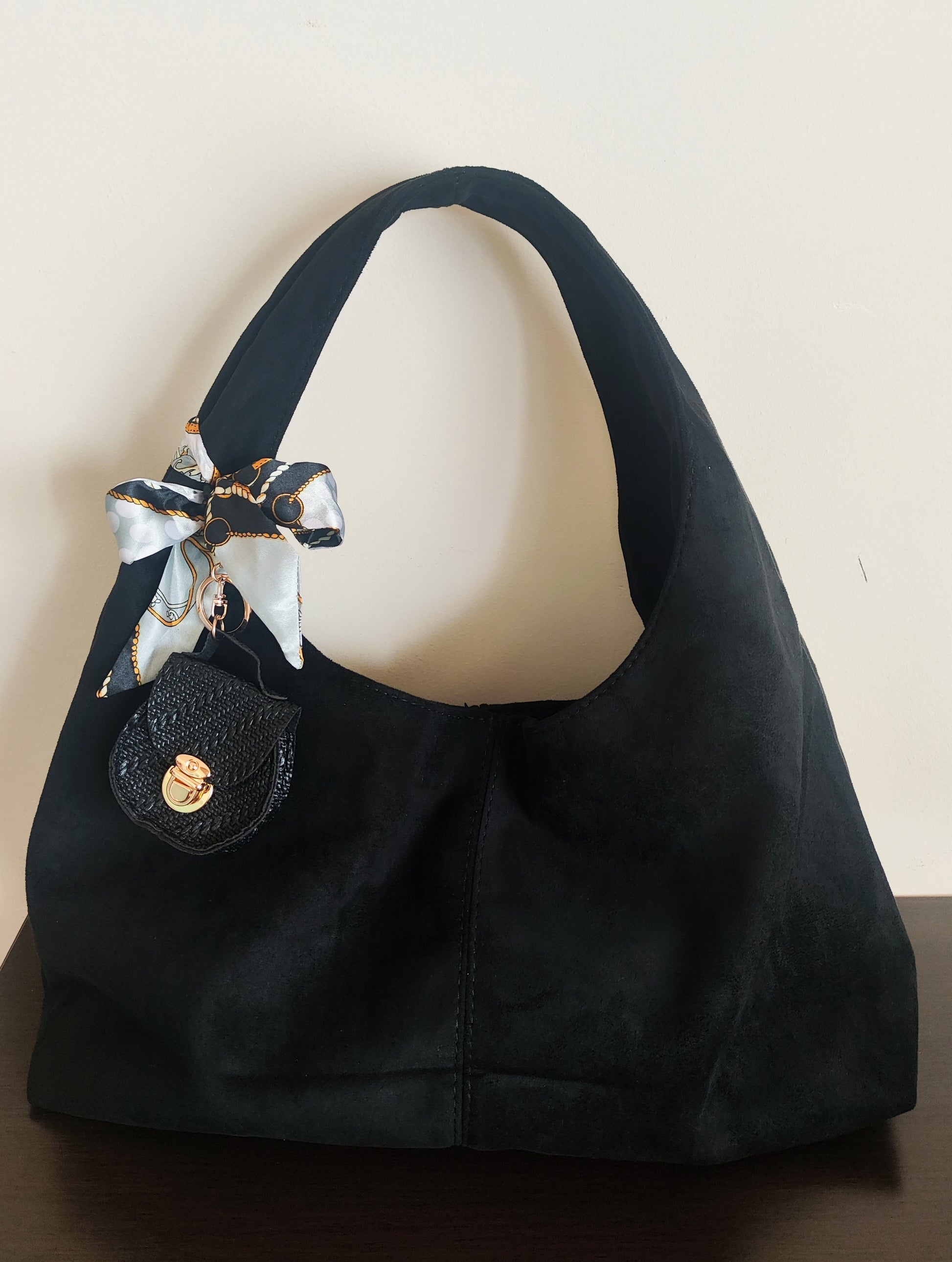 ΤΣΑΝΤΑ ΩΜΟΥ ΑΠΟ ΣΟΥΕΤ ΥΦΑΣΜΑ ΣΕ ΜΑΥΡΟ ΧΡΩΜΑ, ΦΟΔΡΑΡΙΣΜΕΝΗ ΜΕ ΕΣΩΤΕΡΙΚΉ ΤΣΕΠΗ,ΚΛΕΊΣΙΜΟ ΚΛΙΠ ΚΑΙ ΔΙΑΚΟΣΜΗΤΙΚΟ ΑΞΕΣΟΥΑΡ ΔΙΑΣΤΑΣΕΙΣ 45εκ ΦΑΡΔΟΣ ΚΑΙ 25εκ ΎΨΟΣ.